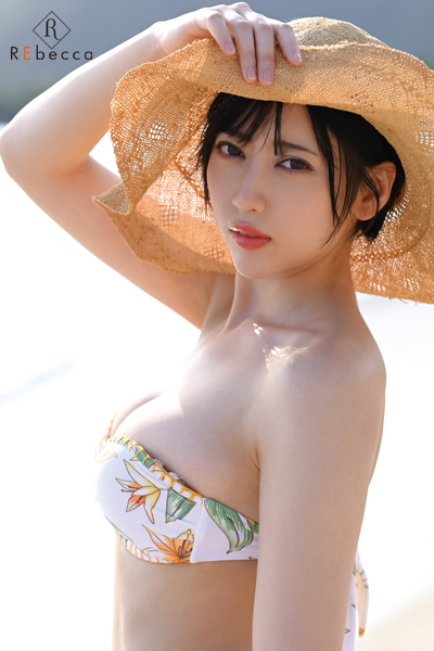 日本列島を離れた撮影は初めで気分もノリノリ、南国の爽やかな雰囲気に美しい青空と海を背景に元気な笑顔がとても魅力的である。