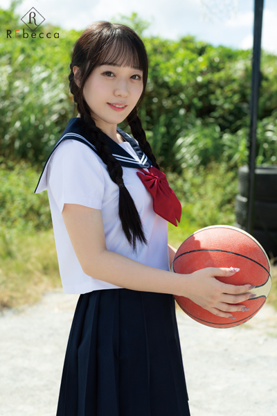 澄んだ白肌に腰まで届く黒髪も魅力、ポニーテールや三つ編みなど長い髪を活かしたヘアアレンジも注目ポイント。